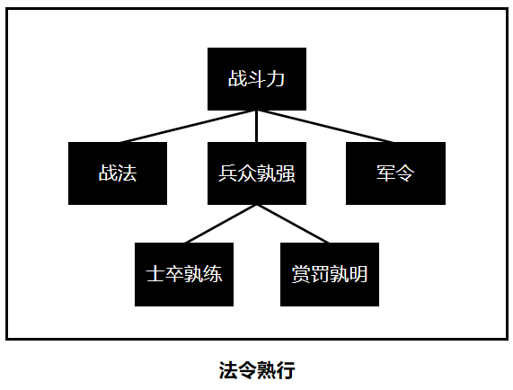 我们认为“七计”决定成败的核心逻辑是“法令孰行”“法令孰行”是结果性的指标,代表的是战斗力,主要考量三个影响因素: