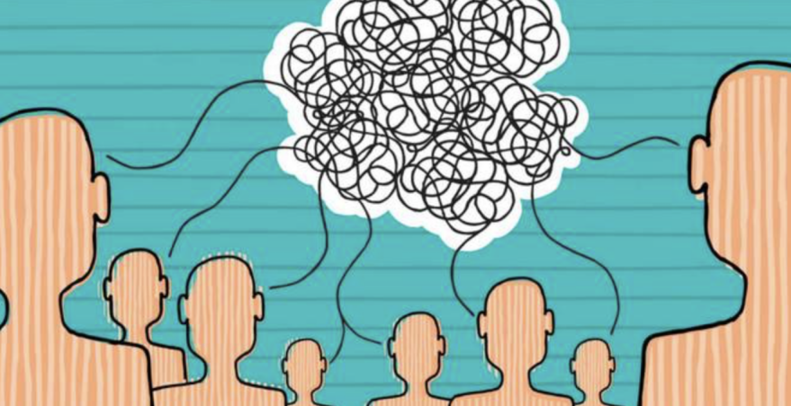 可见,在交流的时候我们尽量用普适的表达是多么重要。在会议中我们每个人都有自己的职责范围、专业领域,当每个人都在会议上对别人输出自己的专业术语时,这个会议的信息就会变成一团麻线,无法梳理清楚。如图6-2所示。