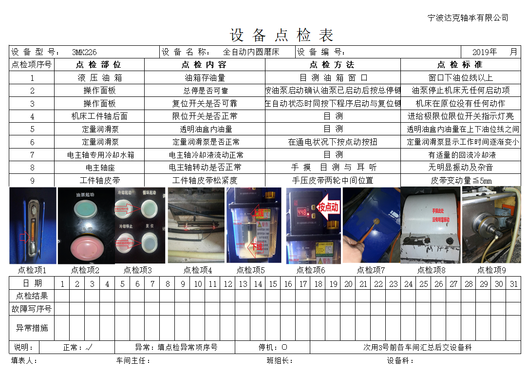 点检表格是对设备进行点检作业的原始记录,通常包括如下项目: