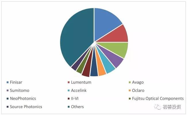 以电信市场为主的Acacia、NeoPhotonics、Lumentu和以数通市场为主的AppliedOptoelectronics(AOI)、Finisar、Oclaro对比可以发现,数通市场公司的毛利率从2015年之后一路走高,净利率在20%左右,电信市场从2016年出现毛利率下滑趋势,净利率在10%左右,明显低于数通市场。如图6-31所示。