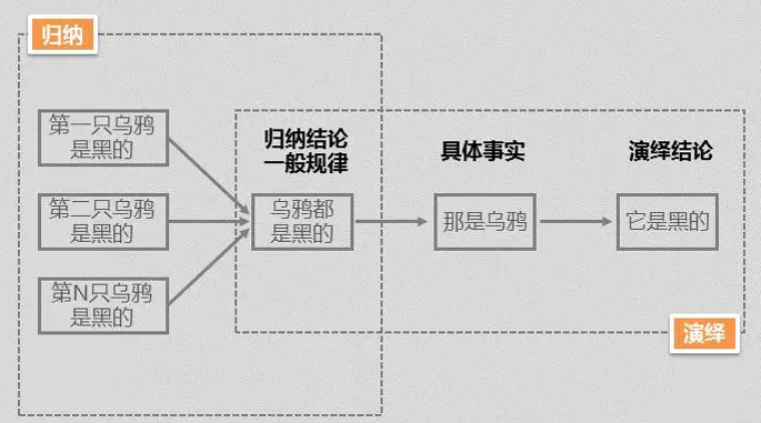 演绎式思维重在推理。比如:所有的人都会死,苏格拉底是一个人,所以苏格拉底会死。由一个大前提,到一个小前提,最后推导出一个结论,这就是演绎的思维结构。我们写作常用的Why-What-How结构就属于演绎式思维,先描述背景问题,或者重要性和价值,然后展开阐述相关原理,最后阐述具体的方法论,表达出观点和结论;还有递进结构,从事情的背景、发生到发展,最后到结果,层层递进,也是演绎式思维。