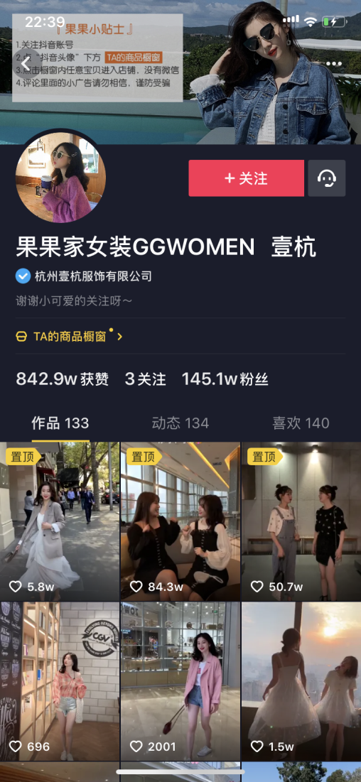 灵子服装搭配师,则通过专业分享服装搭配技巧,吸引目标客户(图4-4)。观众可以在灵子这里学习专业的服装搭配经验,自然慢慢被灵子影响。灵子的商品橱窗里可以上传相关产品,就可以营销转化。