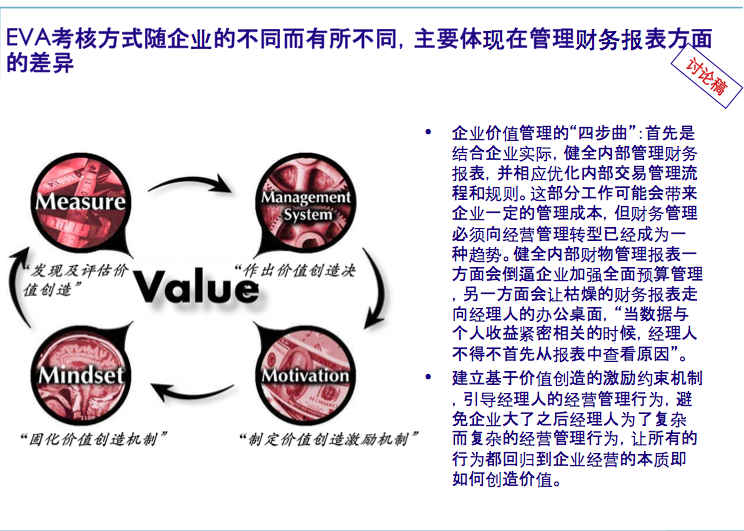 另一方面,要重视它跟奖金之间的挂钩。最终通过考核模式设计,引导职业经理人的高绩效行为,这是价值增量分享的本意。