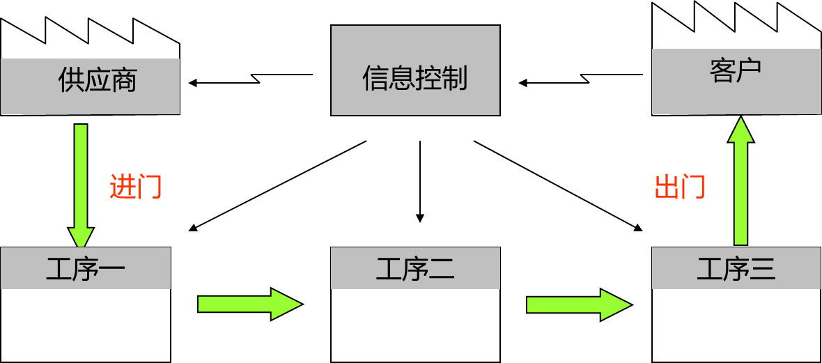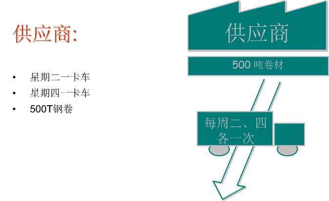 物料流:物料的移动,指原材料、在制品、成品在供应商/各工序/客户之间的移动。