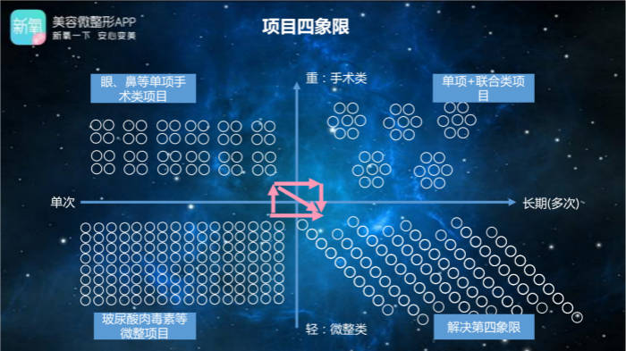 举个例子,新氧美学体系,就是从用户的诉求推动美学设计,进而落实道一套诊疗方案,告诉机构如何参与这个项目,如何提升用户粘性、拉伸用户的LTV。