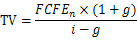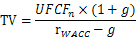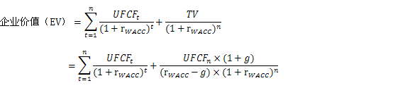 式中,EV为企业价值,TV为预测期末的终值,n为确定的预测期,为确定预测期内第t年无杠杆自由现金流量,g为永续增长率,