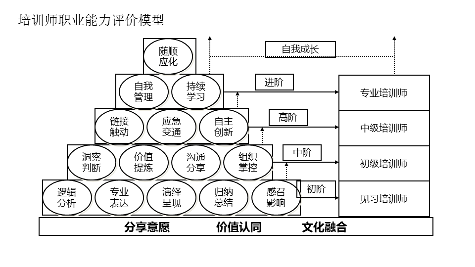 同时,培训师与其他很多职业一样,会有一些不同的成长阶段,而不同的成长阶段所要求的职业能力要素也必定有所不同,只是每一项职业能力都会随着经历、经验的累积得到逐步的提升。