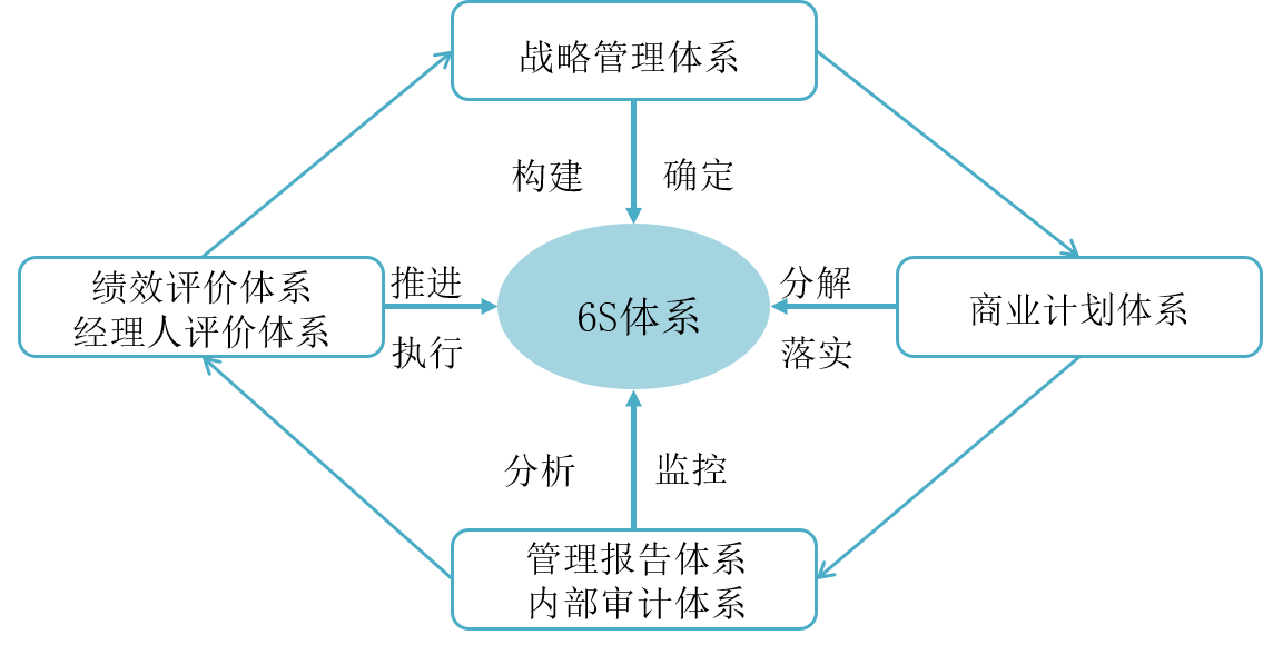 其中,战略规划体系是起点,确定业务单元的发展方向、中长期战略目标和重大战略举措,主要由集团战略管理部组织推进;商业计划体系是对战略举措进行分解,制定行动计划和预算,落实战略举措,并每年进行战略检讨和战略落实,主要由集团战略管理部组织推进;管理报告体系是对战略执行的过程和结果进行监控和分析,主要由集团战略管理部组织推进;战略审计体系是对战略执行的方向、行动计划与战略的一致性、战略执行结果的真实性等进行审计,为业绩评价、经理人考核与任免提供依据,主要由集团审计部组织推进;战略评价体系是对战略执行过程和结果的评价,主要由集团战略管理部组织推进;经理人评价体系是依据战略评价结果对经理人进行考核奖惩,二者均是为了驱动战略的执行,主要由集团人力资源部组织推进各体系均以战略为主线。