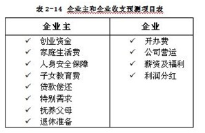 在支出方面:应计算“固定”支出、“非固定”支出和其他支出等三项,如创业时的开办费、人身安全保障费、生活费、税费、贷款本息、为退休做准备的费用及子女教育费等。很多人往往忽略了风险管理费、退休金、医疗费等。一般而言,年轻人因为资金有限,良好的风险管理也就显得格外重要;而步入中年的人,则必须为退休早做准备。