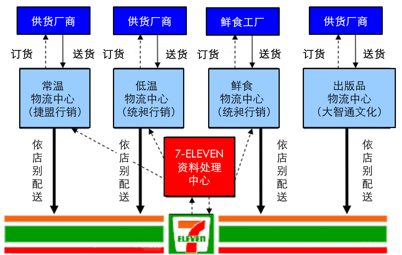 早期,中国台湾地区的便利店都没有自己的配送中心,批发商是便利店与供应商的“桥梁”,他们负责传递货物、信息、资金,便利店要和数量繁多、相互独立的批发商打交道。这直接制约了配送效率,无法满足消费者高效率、及时性的需求。