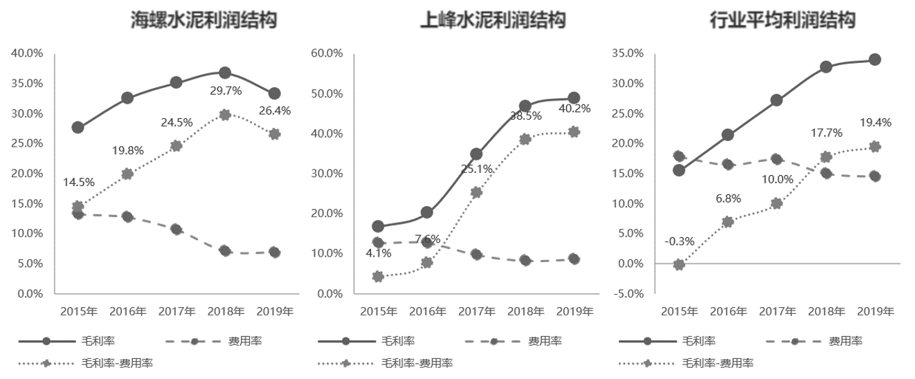 海螺水泥、上峰水泥、水泥制造行业在2015—2019年的利润结构如图8-32所示。