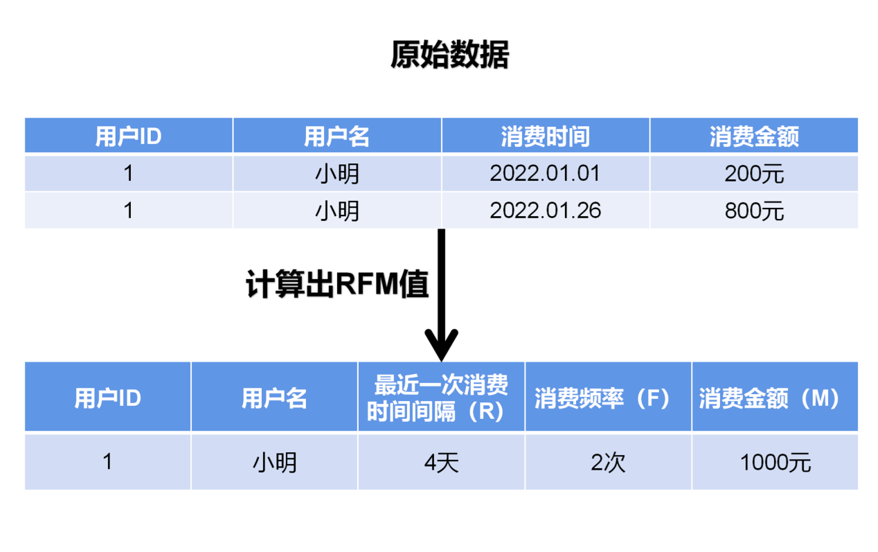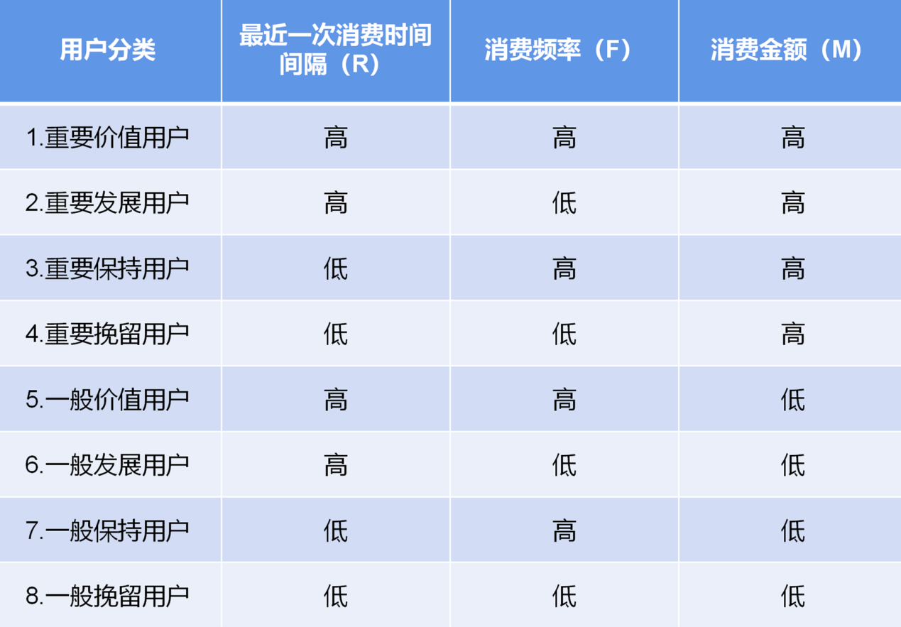 这样通过RFM分析方法来分析用户,可以对用户进行精细化运营,不断将用户转化为重要价值用户。