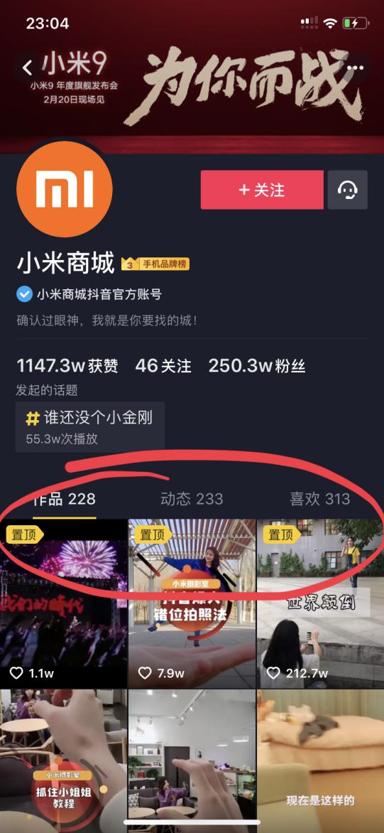 当账号粉丝数量低于30个时,是不具备一分钟视频权限的。但是认证蓝V之后,可以直接具备一分钟视频权限,并且具有视频置顶功能,可以将最多三个视频进行置顶(图4-27)。