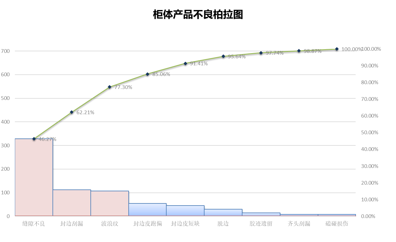 根据归集的数据,以不良原因,不良状况发生的现象,有系统地加以项目别(层别)分类,计算出各项目别所产生的数据(如不良率、损失金额)及所占的比例,再依照大小顺序排列,再加上累积值的图形。