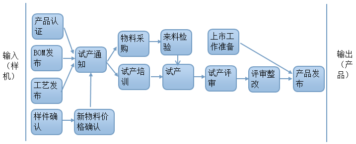 试产通知的责任人是计划部计划工程师,输出是试产通知。计划工程师只有在结构工程师和装配工艺工程师确定可试产后,才可以发布试产通知。在发布试产通知前,计划工程师应确认物料是否可以在试产前到位,各关键参与人(装配工艺工程师、结构工程师等)是否能参加试产。试产通知因注明试产数量,一般试产数量为50~200台,采购员按试产数量要求进行物料采购。
