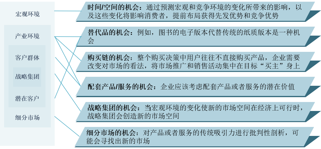 机会源于宏观环境、产业环境、客户群体、竞争对手的变化,具体分析如下: