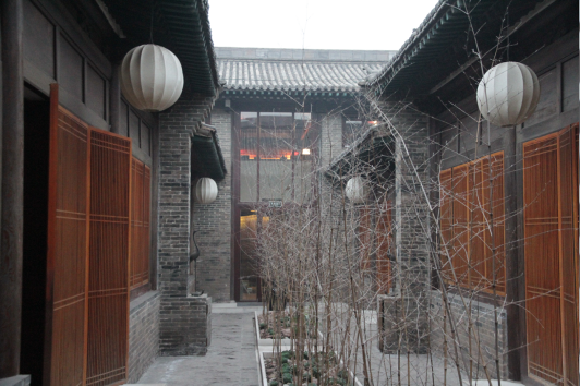 用心复古也不是古,所以,过去就是过去,现在就是现在,未来就是未来。三个阶段有各自的人文文化焦点,同时作为策划者要确定这些文化焦点的内容及之间的关系。而文化的过去、现在、未来正是我们追求的人文轴线,深刻理解后,融合当代人的哲学思想、商业主张、文化意境等,这样的改造才有意义。用以下平遥古城里的锦宅及中国美术学院“象山校区”两个例子说明。