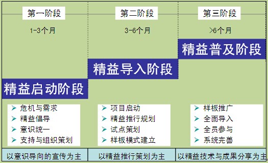 在导入阶段,以精益推行策划为主:推行精益生产的长期愿景和使命是什么?为实现精益愿景和使命,整体规划和推行计划是什么?
