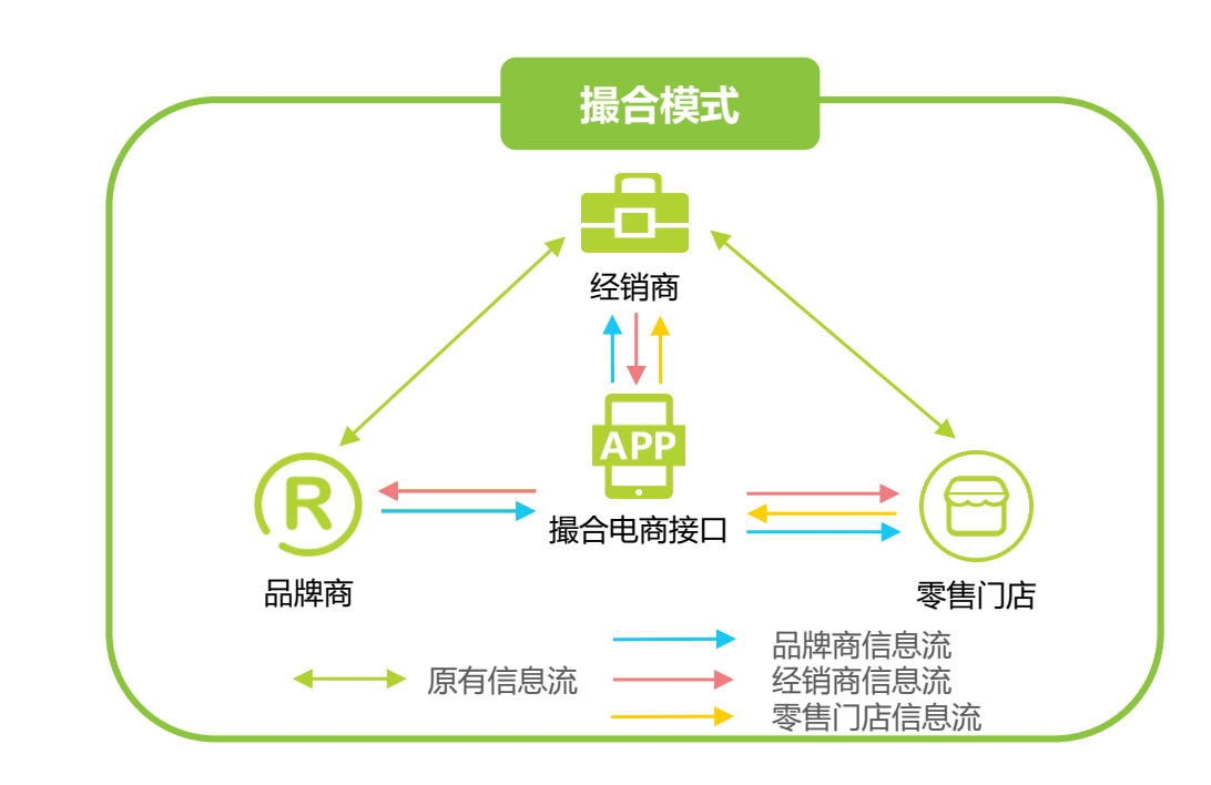 现在有很多被称为“撮合式”的供应链公司,这些其实都是在互联网时代、“溶和营销”时代演变出来的新型的“服务商”,对接品牌商和零售商,这类新服务商,除了有“阿里零售通”“京东新通路”“怡亚通”“易久批”等全国性平台外,还有以广东市场为主的“掌上快销”、以湖南市场为主的“新高桥”、以上海市场为主的“快来掌柜”和以成都市场为主的“惠进货”等平台,在区域市场正在快速发展。如图5-28所示。