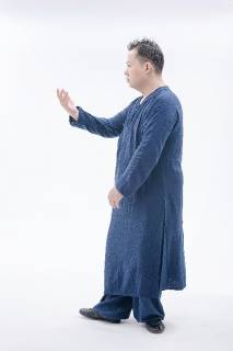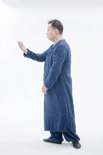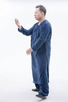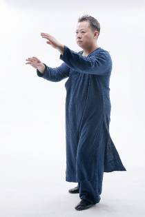 2.右脚不动,左脚尖向右旋135度转向正南方。身体转动时,保持尾闾中正。