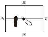 2.左脚不动,右脚向前荡出于左脚尖一步前,右脚尖向西北侧。
