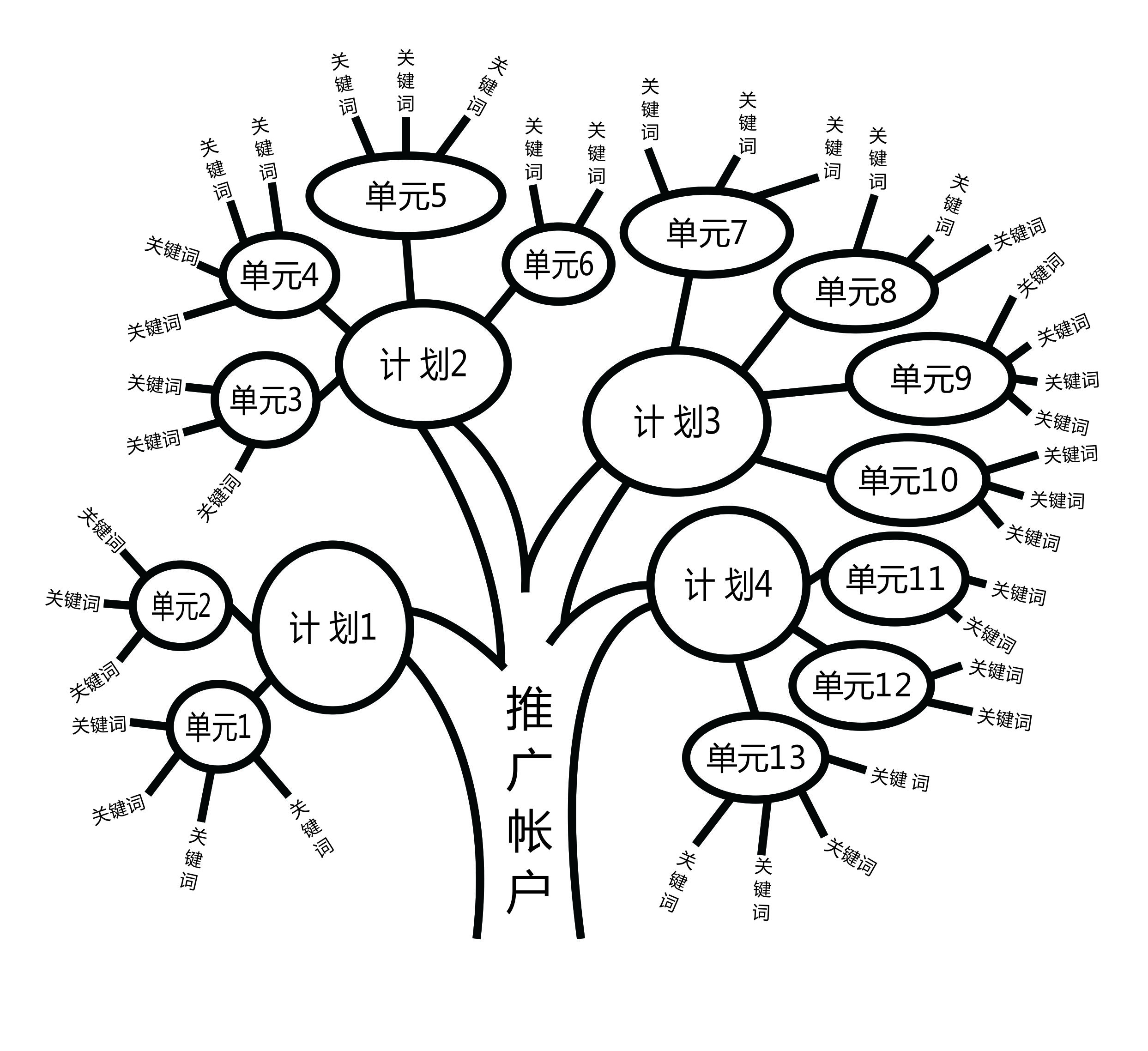 对于搜索推广结构,我们只需要掌握一个应用技巧就可以了:判定什么情况下需要产生新的推广账户,什么情况下设立新的计划,什么情况下需要建立新单元,然后再把关键词放在正确的单元里,写好广告创意。