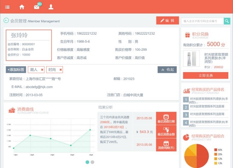 终端系统帮助集团层面营销部门将更多营销能力赋予了最前端的导购,让导购实现了营销数据的直接利用,也成为营销数据的重要入口,这是一次质的飞跃。另外,在营销形式与内容方面,会员也可以在终端便捷地进行积分兑换、使用各类优惠券、参加不同的促销活动。同时,终端系统新上线了肌肤测试功能,导购可以结合肌肤测试仪等硬件设备,掌握客户肌肤变化数据。它整合了销售、营销、客户肌肤数据,提高了会员活跃度。