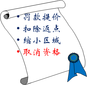 红灯:对于无法达到厂家要求,评估未达标,甚至触犯底线的渠道成员如何处理?要奉行“量刑得当不极端,治病救人是王道”的原则,哪怕是销售目标未完成或偶尔经营竞品低价窜货,也尽量采取口头警告、通报批评、罚款提价、扣除返点、缩小区域等措施,能不取消资格尽量不取消资格。
