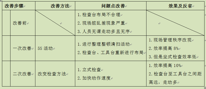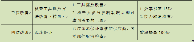 有人会问,干吗不一次到位取消检查呢?事情并没有那么简单,由于主观的(没想到)、客观的(想到了但做不到,即条件不成熟)因素的影响,很多时候改善活动只能循序渐进地进行。