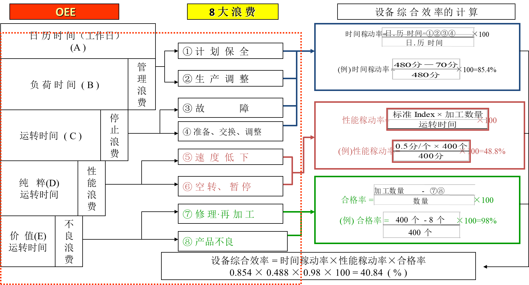 性能工作效率=(单品理论加工周期×加工数量)/开动时间×100%