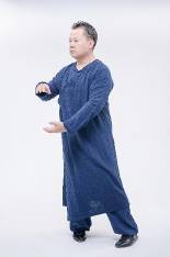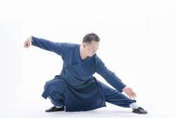 这是第五个单鞭,第二个单鞭下势,也是最后一个。还记得当时在课堂上的单鞭下势定势训练,大家都累得哇哇叫,汗流浃背、两腿直发抖吗?记得就好,那表示大家的脑袋跟身体里都还有印象。为什么教拳时要让你们累?因为脑袋的记忆随时会因为有新东西的加入而遗忘。但如果你的身体因为某个动作而累过,那么残留的肌肉记忆会让你在后续复习的时候,回想得更快,更有利你快速进入状态。这个式子我就不再重复解说了。老方法,下周把单鞭下势的训练心得报告交上来,作为考核的评分之一。