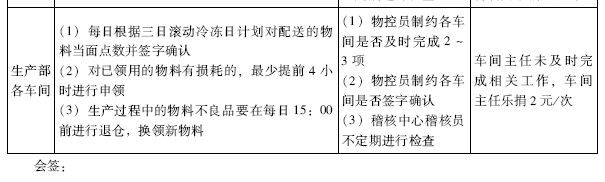 :我们赋予车间主任和物控员权利,他们可以对计划员进行制约。如果计划员未按时完成1-4项相关工作,计划员就要接受处罚,承担责任。
