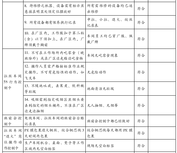 5.电线车间5S行为控制卡 6.拉丝车间5S行为控制卡