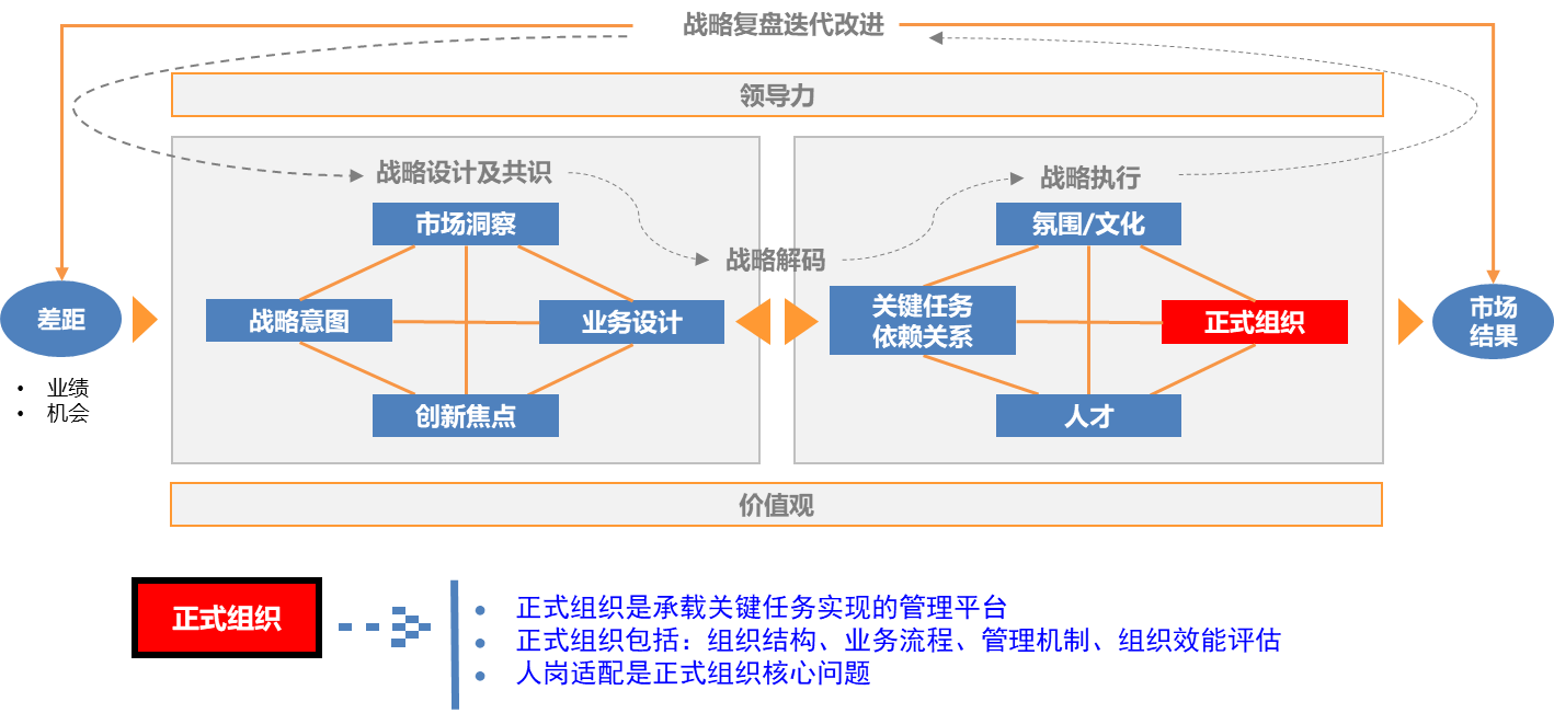 BLM的正式组织模块是讨论在业务复杂性增加后,如何搭建组织能力的管理平台,让想干、能干的员工干得更好,以实现组织目标,如图5-6所示。