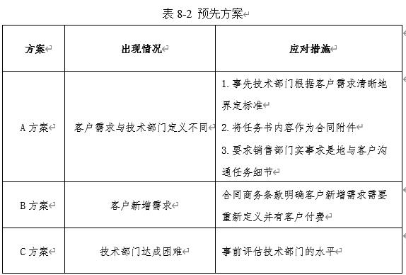 以新松机器人企业为例,其预先方案如8-2表所示。