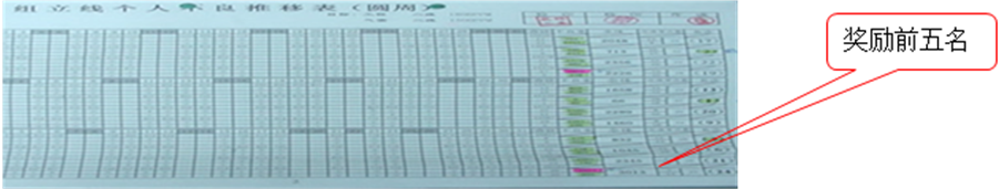 (3)个人成绩每天公布:成绩优秀者奖励,促使未达标者向优秀者靠拢,如表2-42所示。