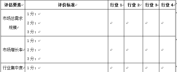 针对单一行业,需要分析企业资源与该行业的匹配性,体现为企业在该行业中的综合竞争力,主要表现为产品适应性、技术、资金和人才等资源是否满足行业要求。这往往是一个模糊的分析过程,需要公司技术、市场、生产和采购等核心部门的人员集中研讨确定。主要思路如下: