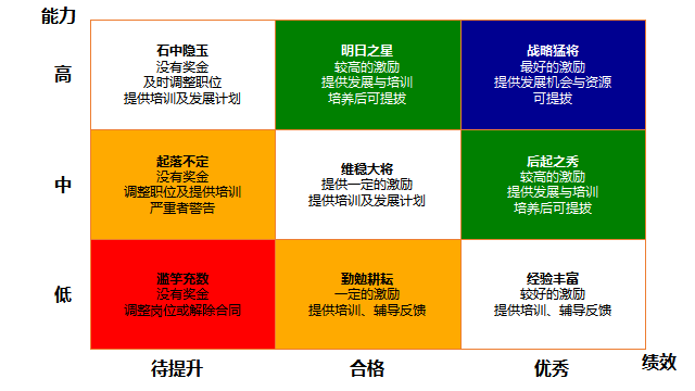根据企业所处行业、企业文化的不同,九宫格也可以有不同的呈现形式。企业可以根据自身组织的特点和文化,设计出更有针对性的人才地图来对员工进行分类与评价。