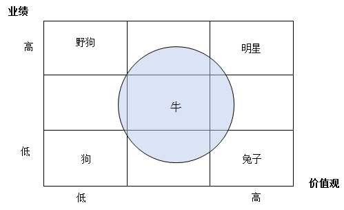 牛(无才肯干):是大多数团队中最普遍的存在。牛型员工的最大特点是“随风倒”。当一个团队中明星员工成为主导势力时,明星就会成为其成长方向。反之,当一个团队中的野狗成风时,他们就会将野狗作为自己的工作榜样。