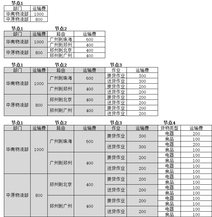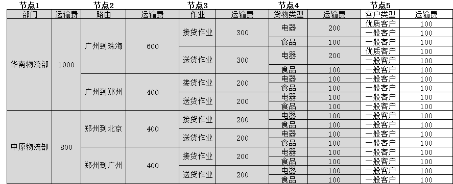 节点3:工资进一步向路由分摊。分摊标准可根据各路由的业务量、运输距离、运费、作业工时、作业次数等确定。不同作业的成本向路由进行分摊,选用的分摊标准可能是不同的。