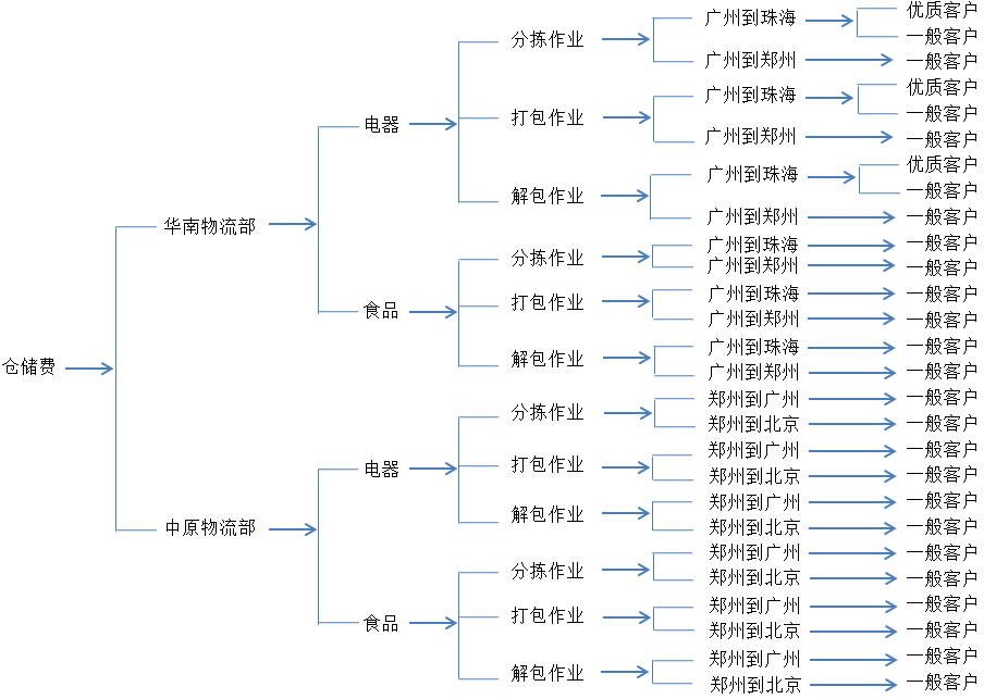 节点3:仓储费进一步向不同作业分摊。分摊标准可根据各作业人工工时、标准工时等。
