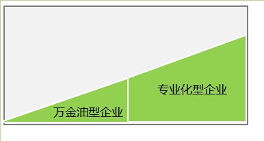 不少工业品企业,在创业初期都具备技术、客户群等某个面的专长,而且此方面的专业人才也是公司管理的显著长板。扎下根之后,企业就会经历一段高速成长的岁月,业务经营范围也多次扩张,从专一化发展到相对多角度、多元化经营,团队的专长能力也就无法满足发展要求。销售收入在增加的同时,利润率反倒走着下坡路。当行业内部人士在评价这家企业的时候,就会轻声叹一口气:“可惜了,当初紧握的拳头,现在变得松散而无力,一个专长人士变成了万金油。”