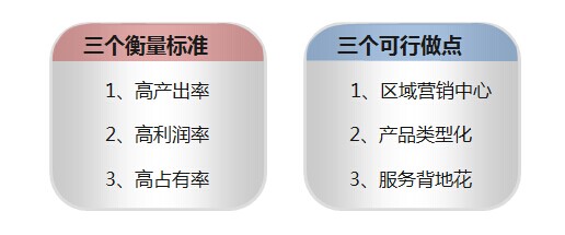 区域营销中心、产品类型化和服务本地化,是地区领先模式的三大可行做点。