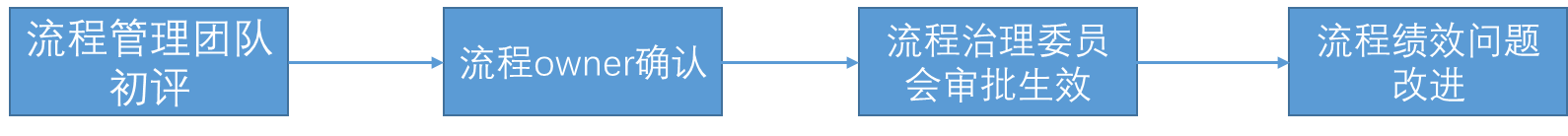 2)评价团队。评价团队首先应该有流程管理的专业团队,一般导入了流程管理的公司至少会有流程管理部这样的组织存在,尽量让这样的专业团队对流程运行情况进行初评,然后是审批流程评价结果。尽量让流程治理委员会这样的组织来进行民主评审,便于增加流程评价结果的合理性。