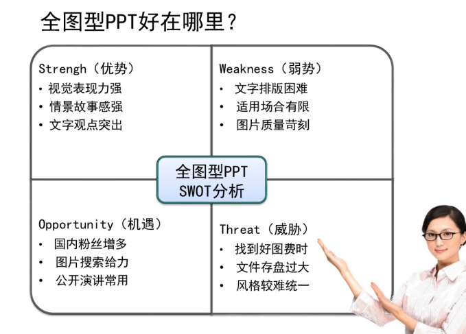 作为现代的培训师,应用全景图片有很多的好处,可以让自己的课程增色不少,而在这个过程中,全景图起到最好的引导效果。为了给学员一些启示,我把全景图的优劣势分析如下,希望对大家有所帮助。如图10-6所示。