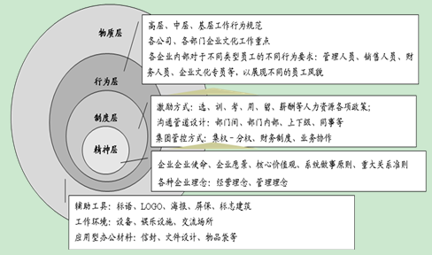 四是物质层面,这是在物的外表上体现,如企业的办公环境、企业视觉设计、企业统一化标识等。