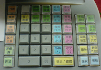7-Eleven在收银按键上标注着:“老男(老女)56”、“壮男(壮女)36-55”、“青男(青女)19-35”、“中男(中女)13-18”、“小男(小女)12”等,收银员在收银时,会同时快速地将顾客的信息输入系统,充分利用顾客的数据。如图6-1所示。