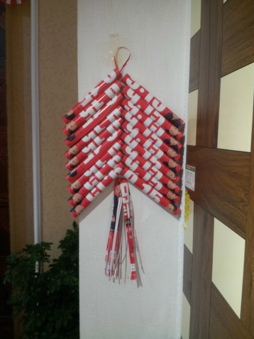 图4-39是把产品图册折成一定标志的物件,是一种现有资源的整合.