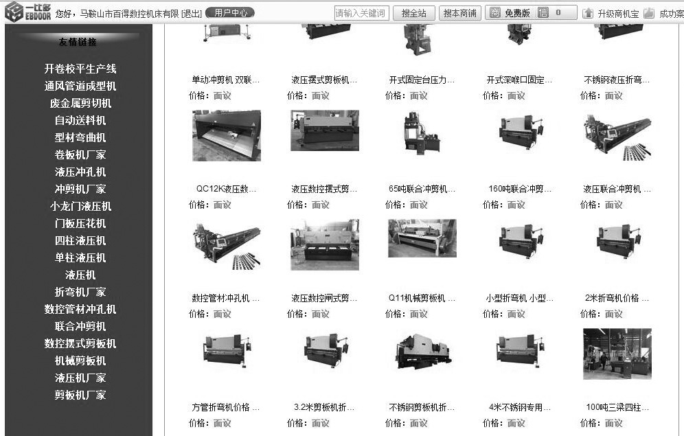 友链技巧:在免费平台上有几个地方是可以做企业官网的反链。第一个地方就是在联系方式页面里,有专门的地方填写公司网址,但注意有些平台比较小气,就是让你填写,也不真正链向你的网址,所以要检查一下。第二个地方就是有部分B2B信息平台在企业店铺首页都设有友情链接栏目,可以在此填写10个以上的网址。建议在此处把企业所有网站都填写上去,只要没有达到友链上限,还可以把重要的页面网址放上去,以提高这些页面的搜索引擎收录速度和排名。图5-4的左侧,在一个叫“一比多”的免费平台上,一家机械设备制造商在店铺里做的友情链接,实际上是指向官网不同页面的单链15个友情链接位置,全部用尽。