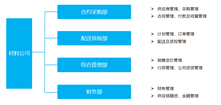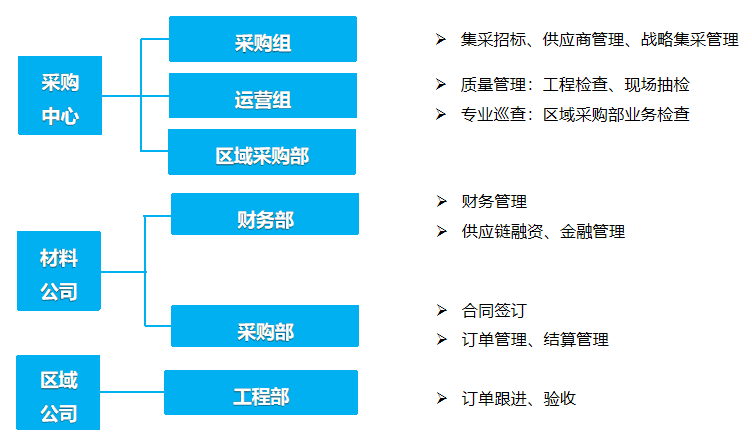 原有三大核心部门,分别是供应商管理、采购合约;现有的组织要求涵盖计划管理、供应链管理、合约采购管理、付款及结算管理、样板管理、配送管理、质检管理等。